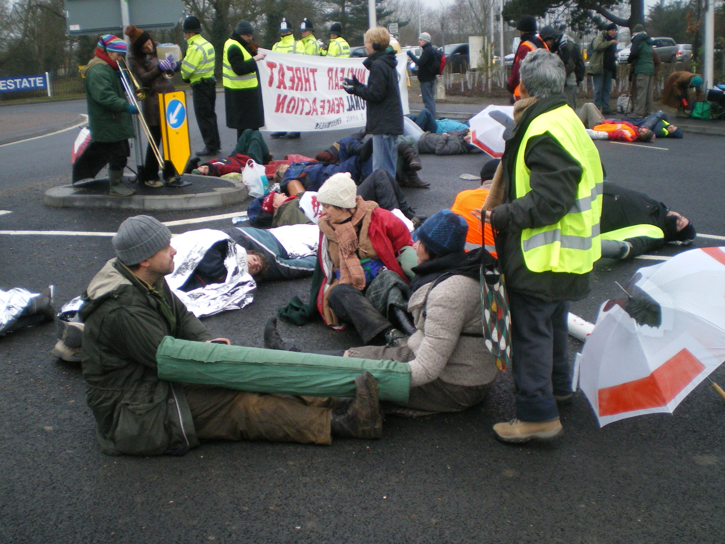 Aldermaston, Britain’s nuclear bomb factory was successfully blockaded again on February 15th this year. By 7am all gates were effectively blocked, preventing traffic and workers from entering.